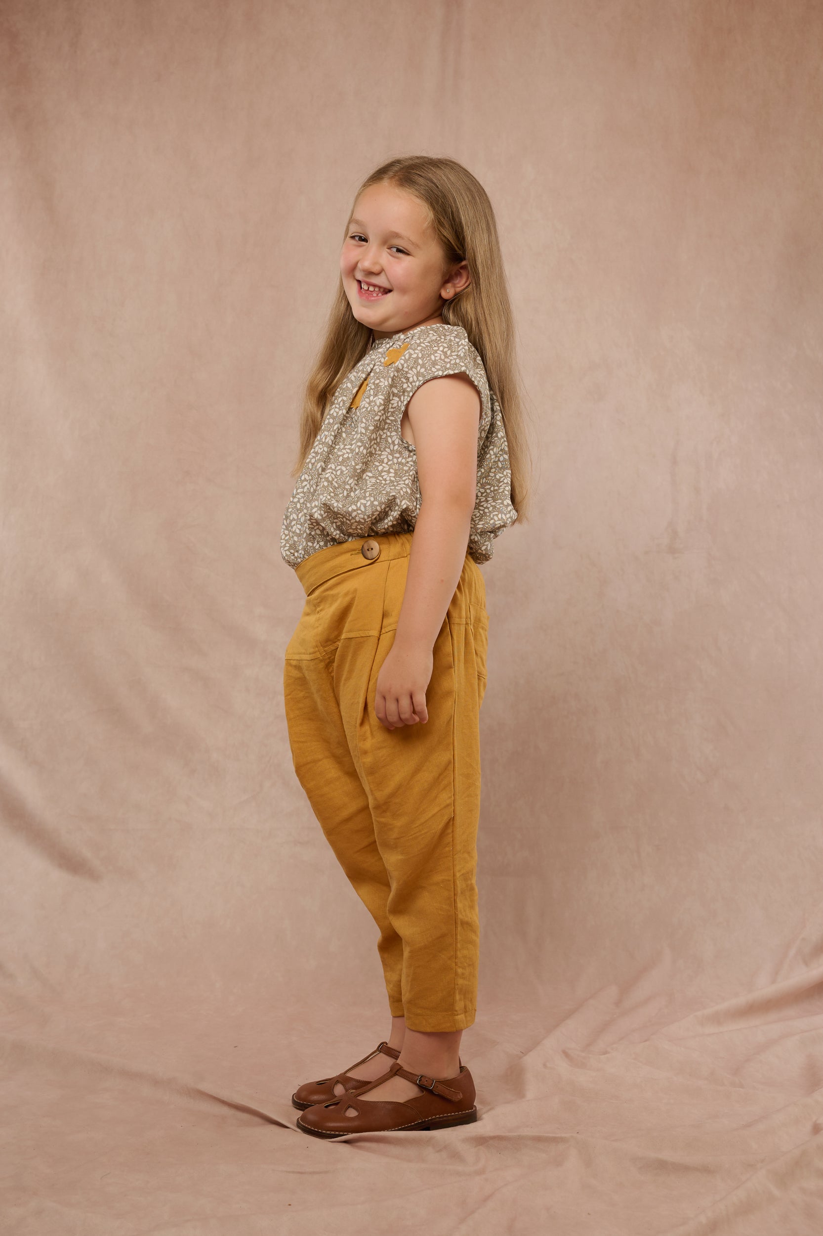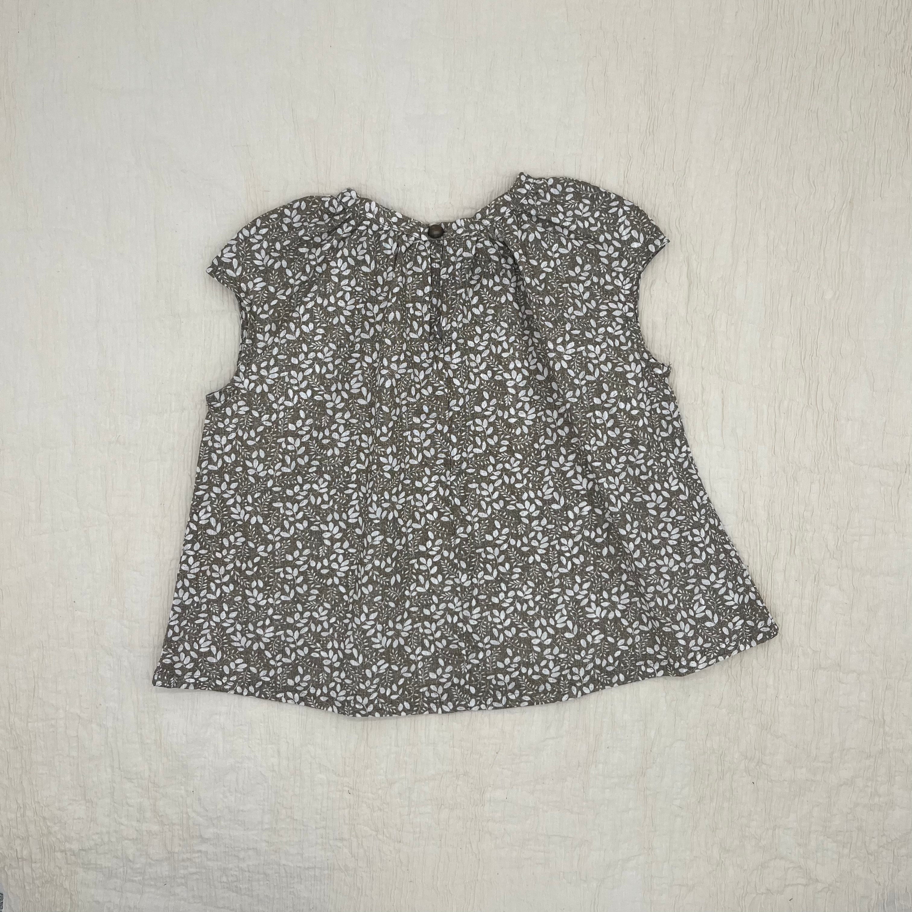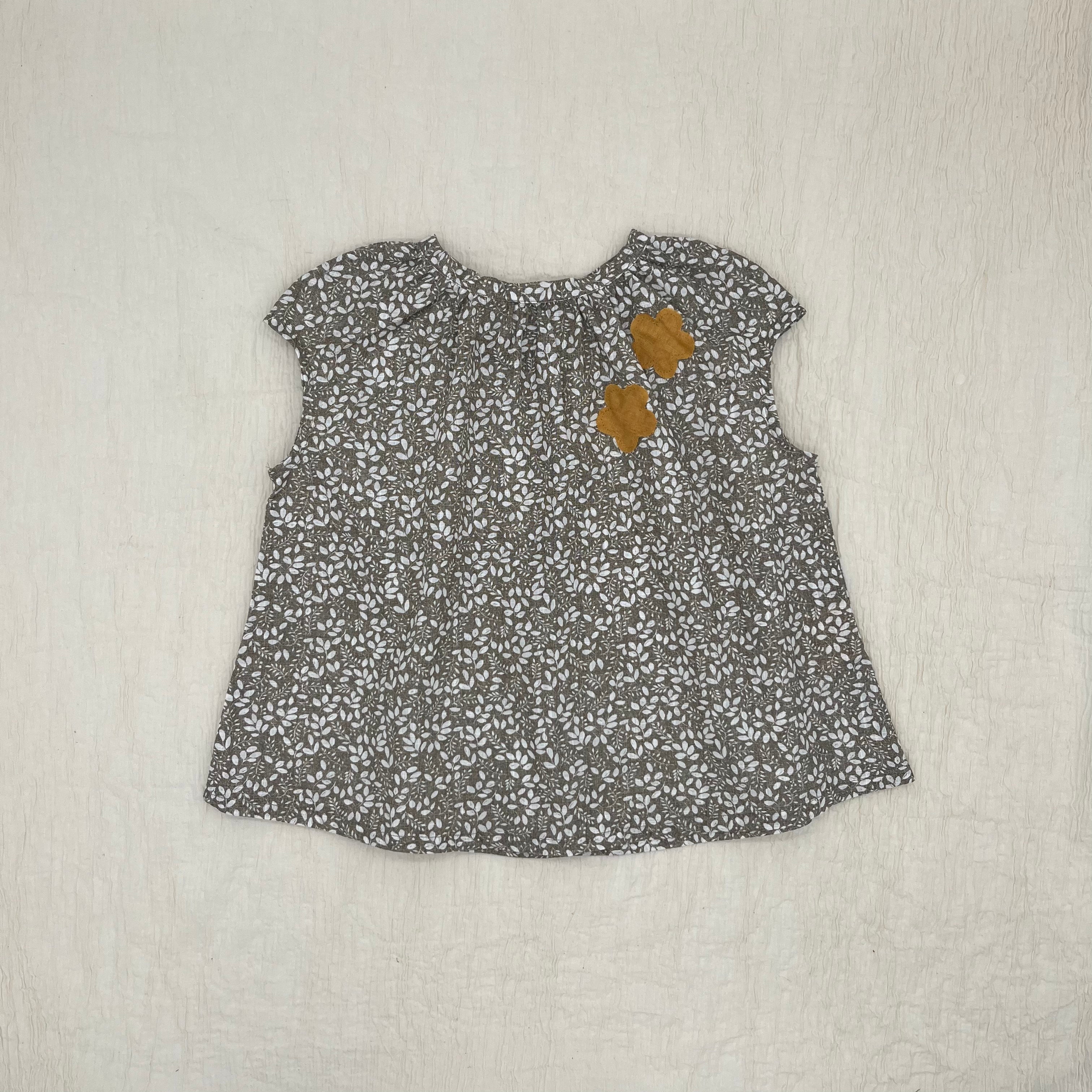 The Flora Top is a summer piece with uniquely cut sleeves and floral patches at the front. Finished with a back button closure.