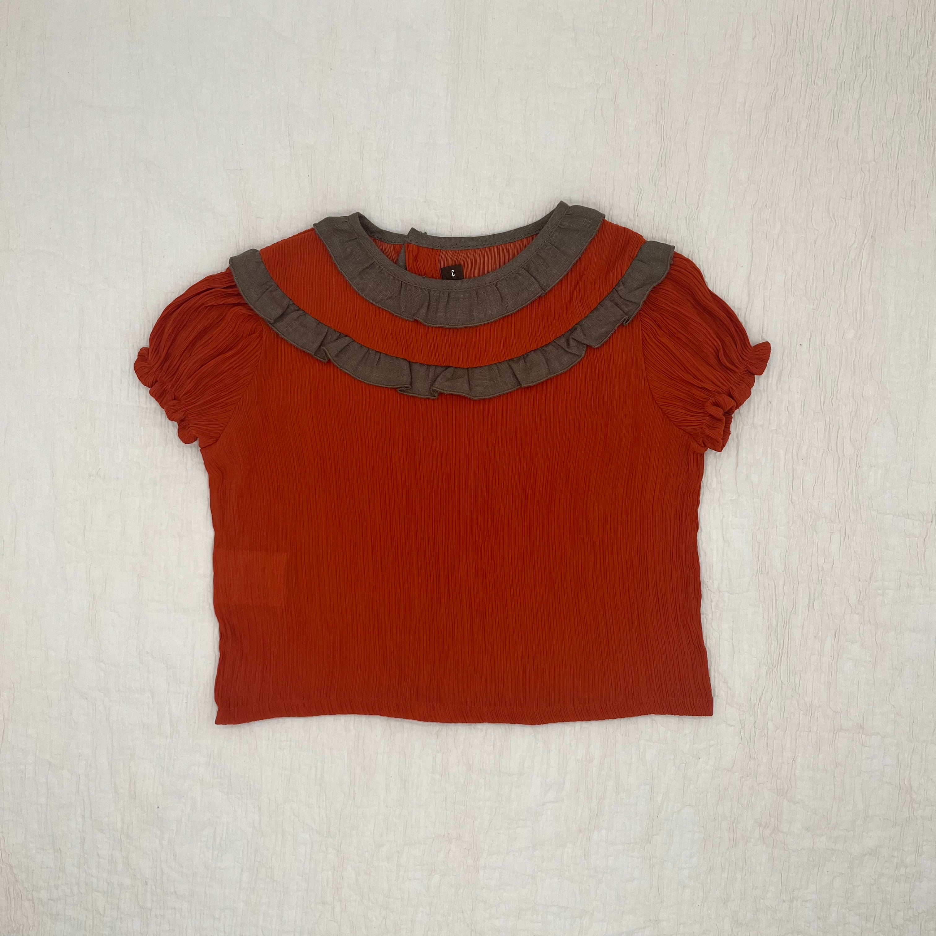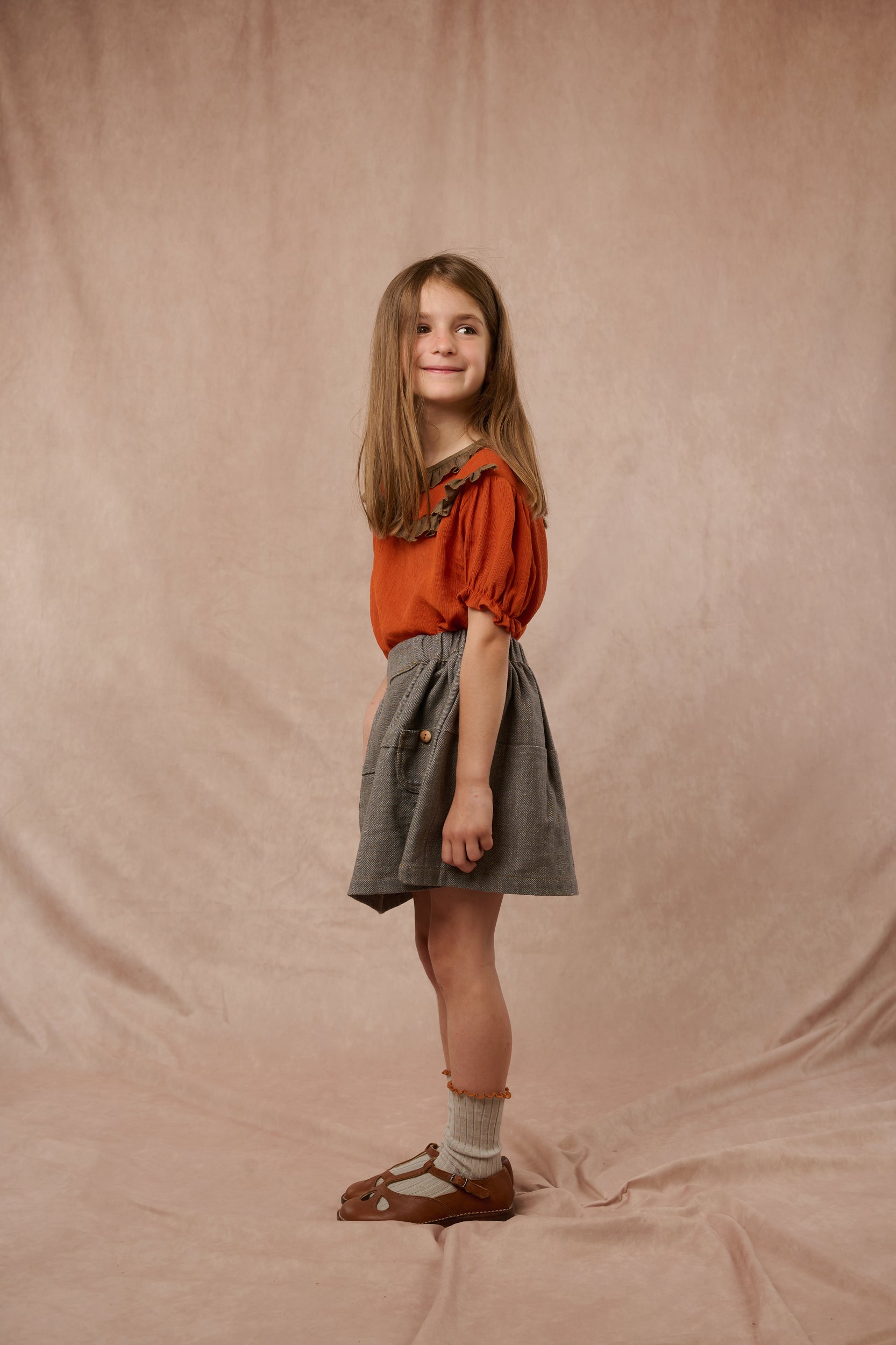 The Sveva Top is designed with lovely frills and puff sleeves, making it a favorite in any girl’s wardrobe. Back button closure for easy dressing.