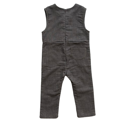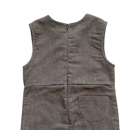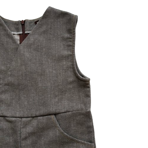 This sleeveless jumpsuit features convenient opening pockets at the side seams and a back zip, combining practicality with a stylish design.