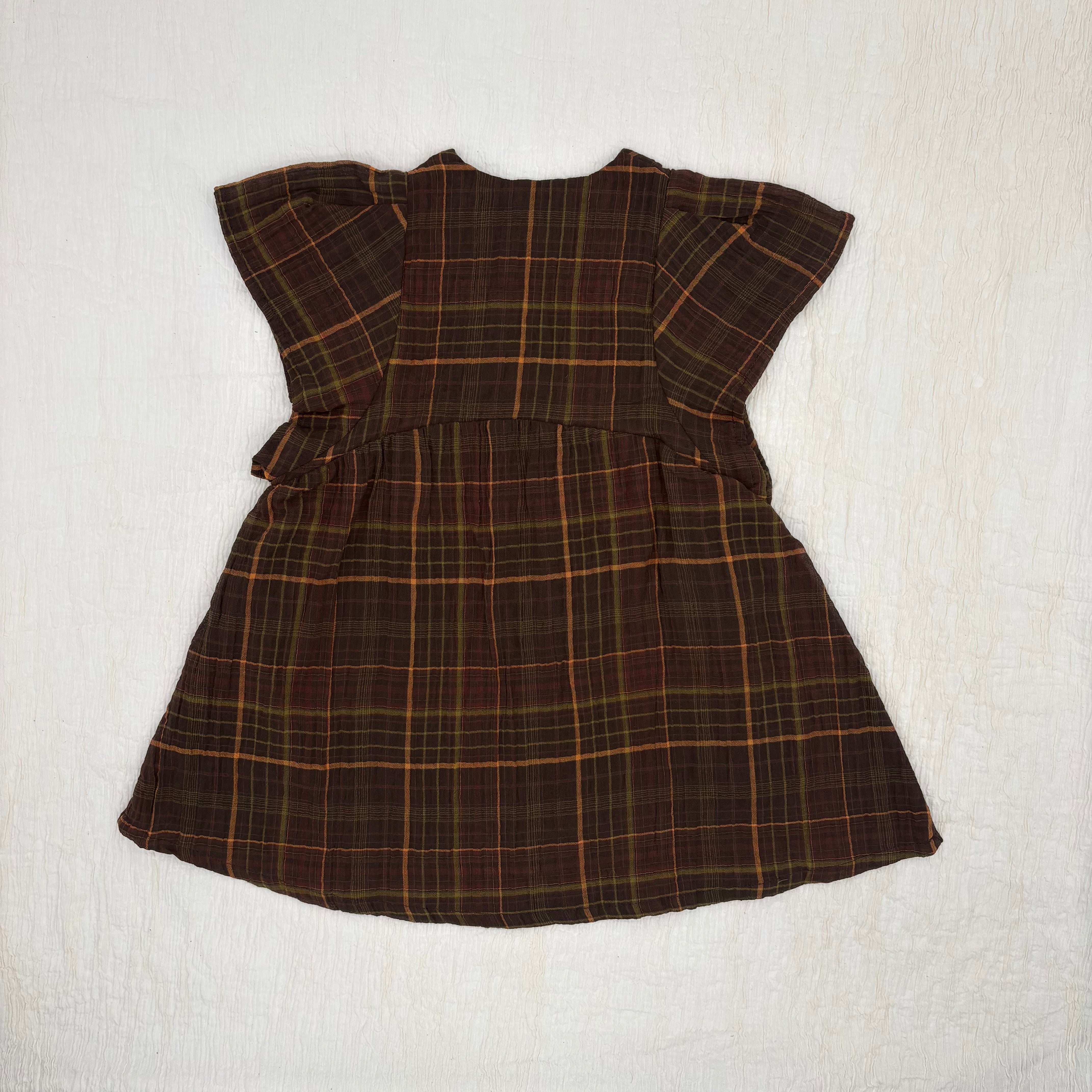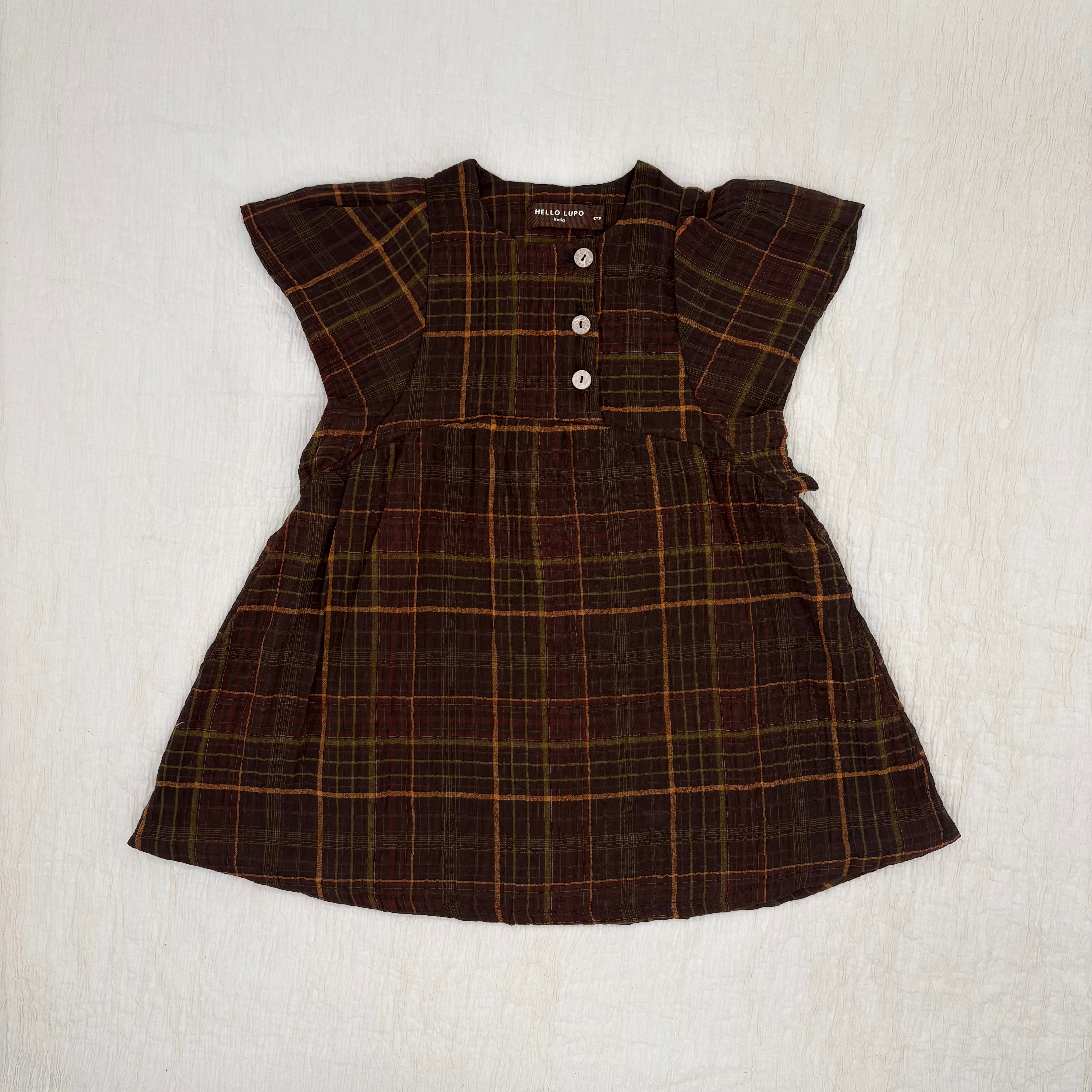 The Gaia dress with short unique wide sleeves and three buttons down the front, with a wide skirt that combines style and practicality.
