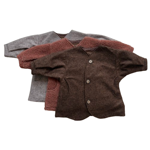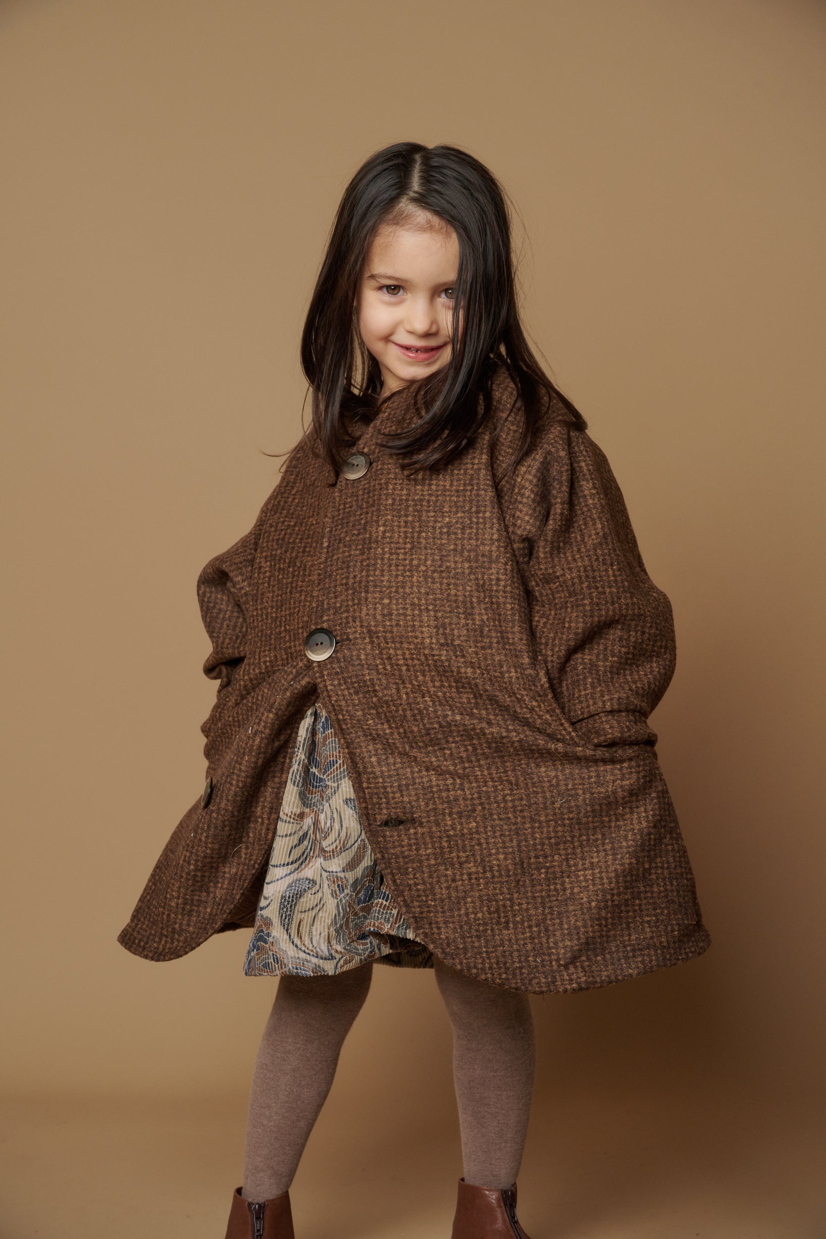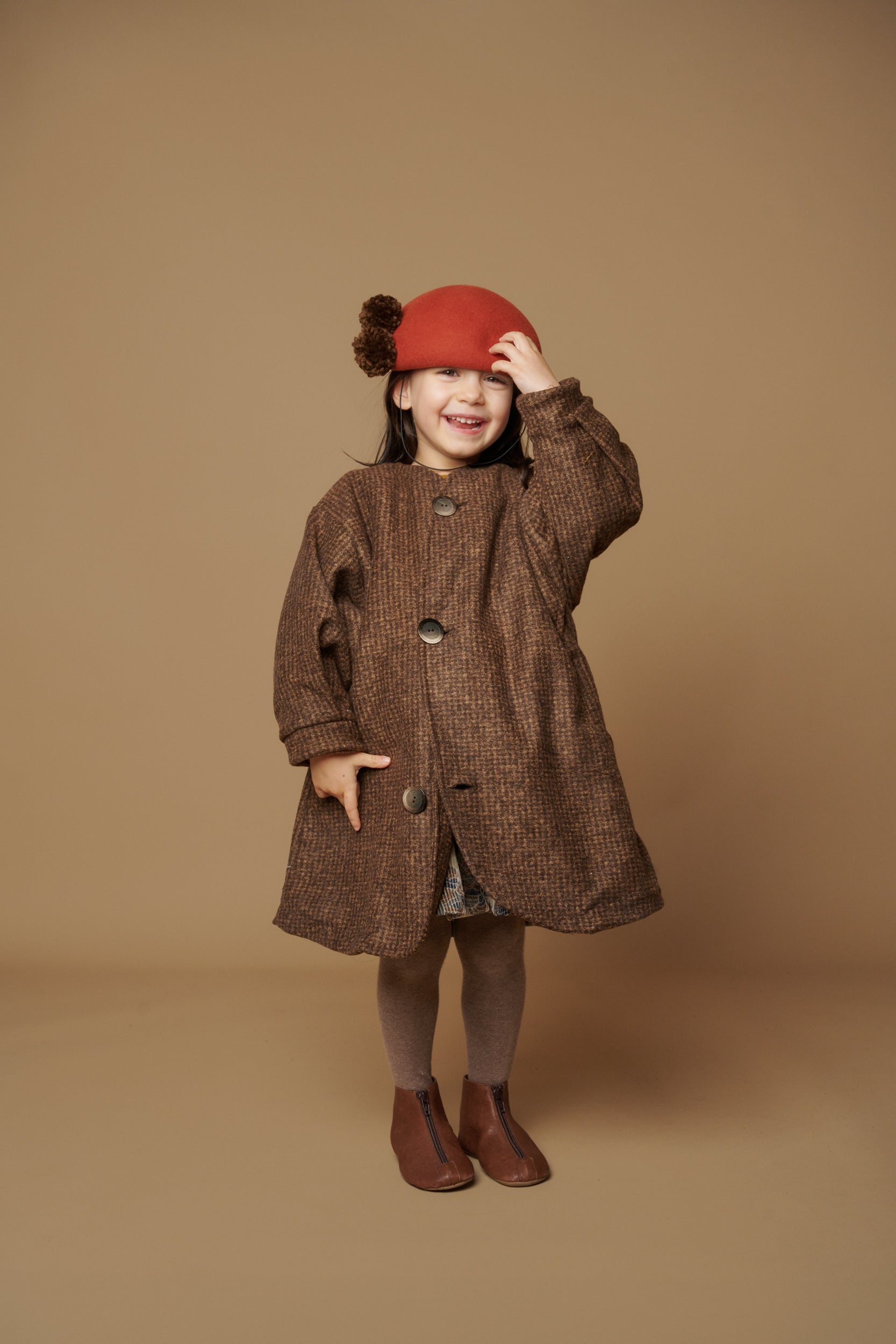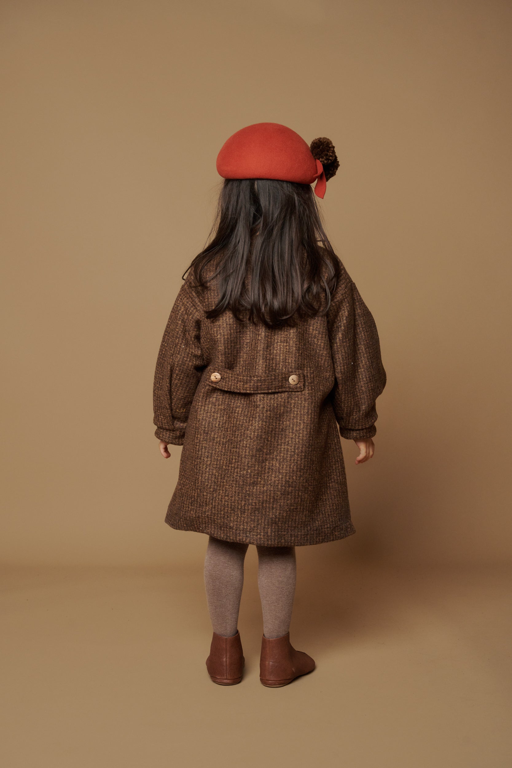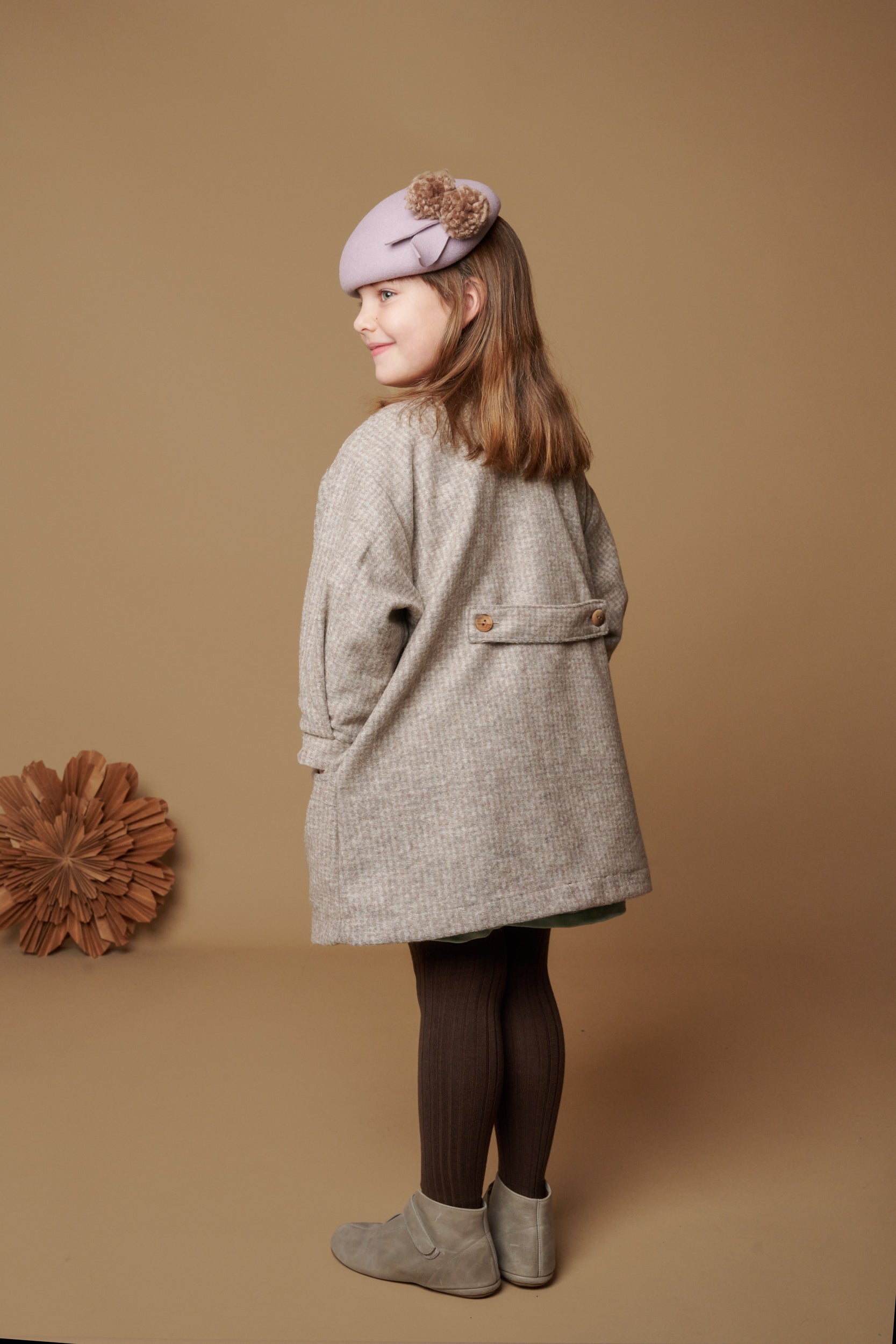 The Claire Coat is a beautifully designed piece, perfect for keeping your child warm while offering a stylish and unique look. This coat features a distinctive shape and charming balloon arms, creating a modern and playful silhouette. The front is adorned with three large buttons, providing a secure closure and adding a touch of elegance to the design. Made from high-quality materials. Ideal choice for colder days.
