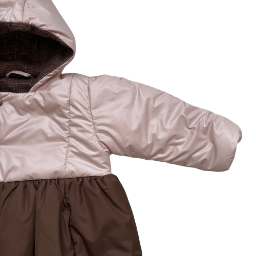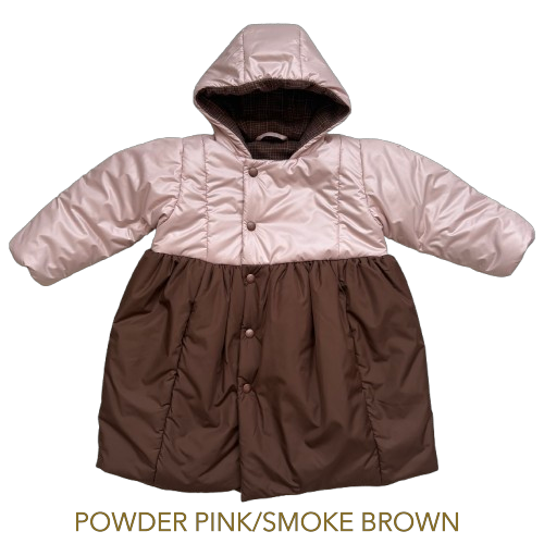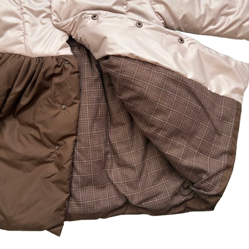 このフード付きラウンドショルダーコートは、フロントボタンで留められ、パッチポケットが付いています。100% ポリエステル製で、裏地は綿 80%、ウール 20% です。お手入れ方法には、冷水デリケート洗いまたはドライクリーニングをお勧めします。イタリア製。