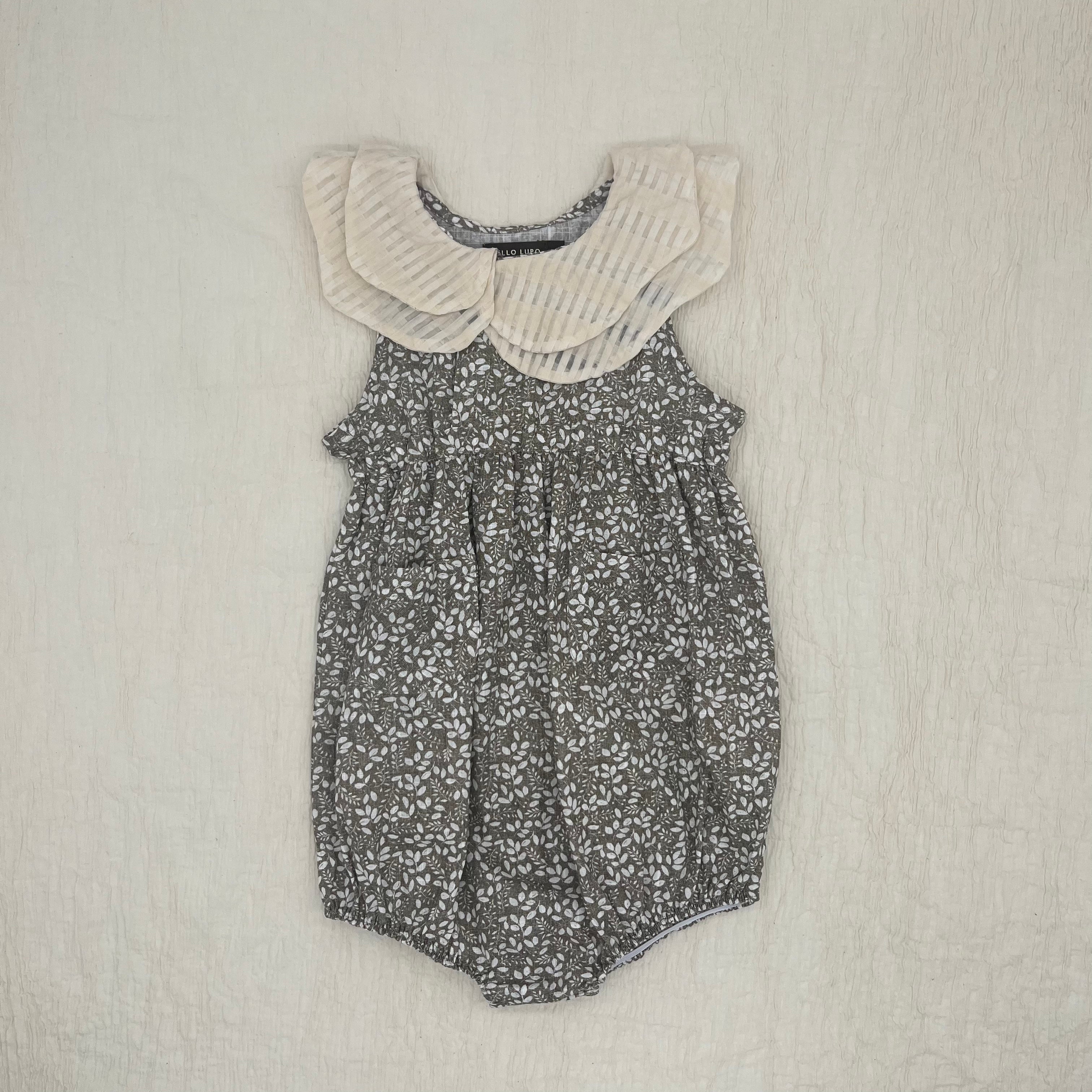 The Nami Sleeveless Baby Jumpsuit is one of Lupo’s signature pieces, defined by its distinctive double-layered collar. It features front wooden buttons, elasticated waist and legs, and two patch pockets.