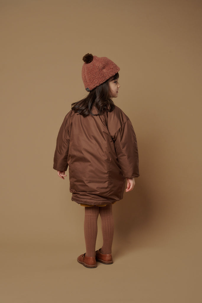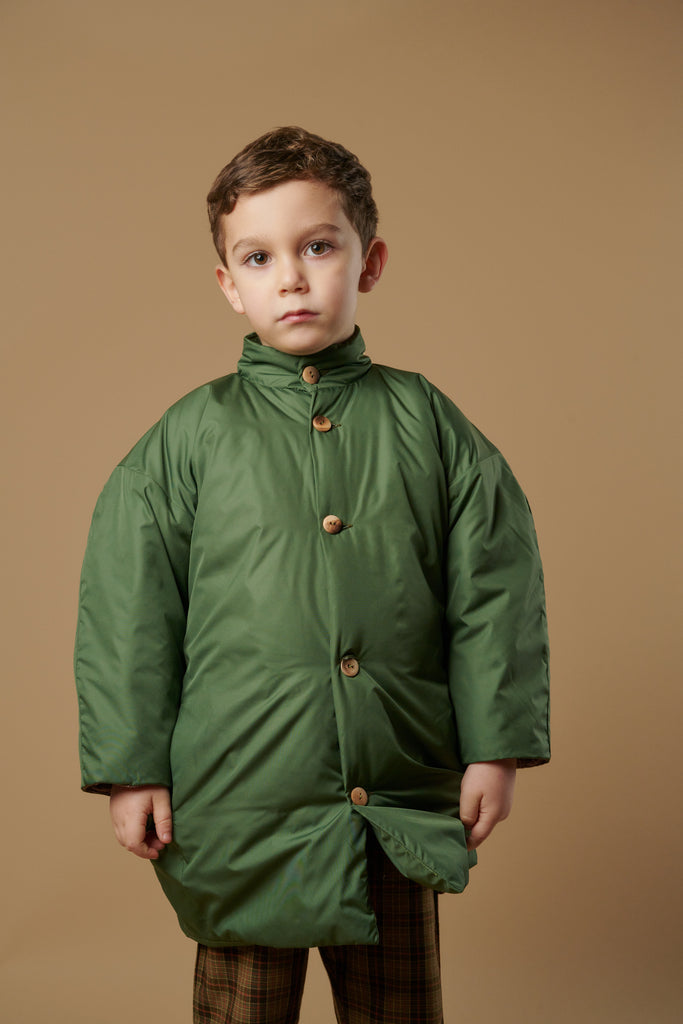 This high-necked coat is both practical and stylish. The front closure with press studs and side pockets make it perfect for everyday use. The waterproof fabric and padding ensure warmth during the winter months.